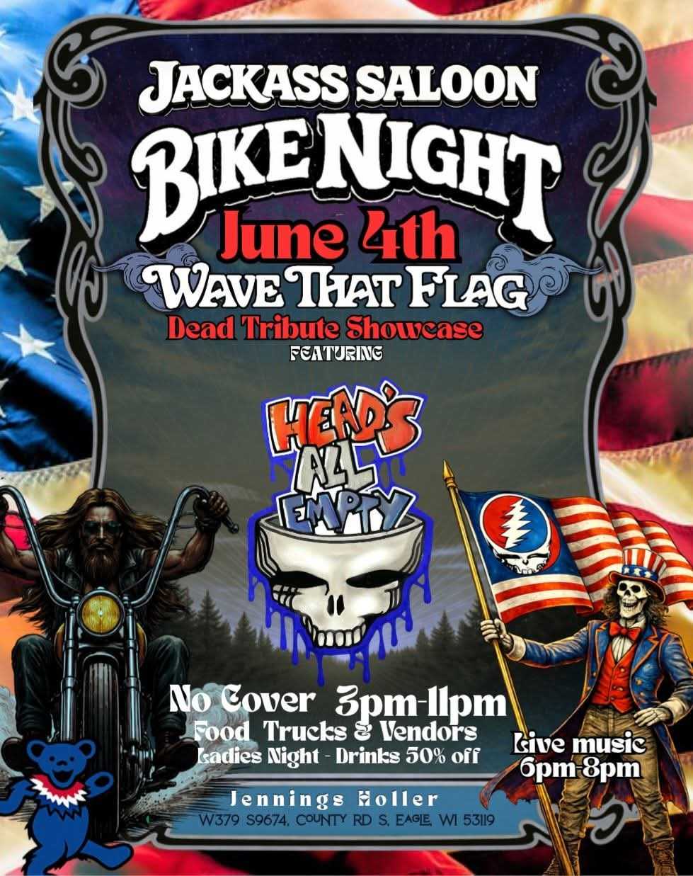 Join us this July 2nd through the 4th for Wave That Flag, a three day celebration of the timeless music, spirit, and culture of the Grateful Dead. This is more than a festival; it is a gathering of heads, hearts, and souls coming together under the stars to honor the songs that changed generations. 🌌🎶 We are bringing together the best Grateful Dead artists from all across the Midwest, delivering everything from faithful recreations to deep exploratory jams inspired by the Dead’s legendary catalog. Expect long grooves, cosmic solos, and that unmistakable moment when the music takes over and the crowd becomes one 💀🌹